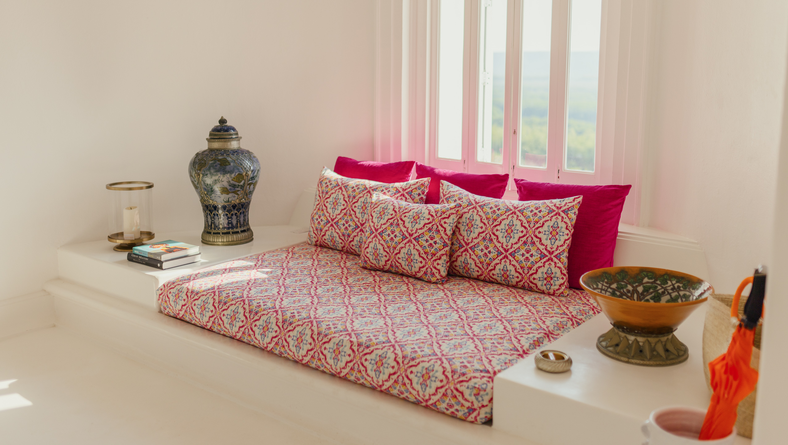 Best suited for families with small children, the Lion Suite can be connected with the Dragon Suite to allow families space and privacy whilst remaining close together. With a lively palate of vibrant pinks and whites, guests will wake to views over the estate directly from bed or their private terrace.
