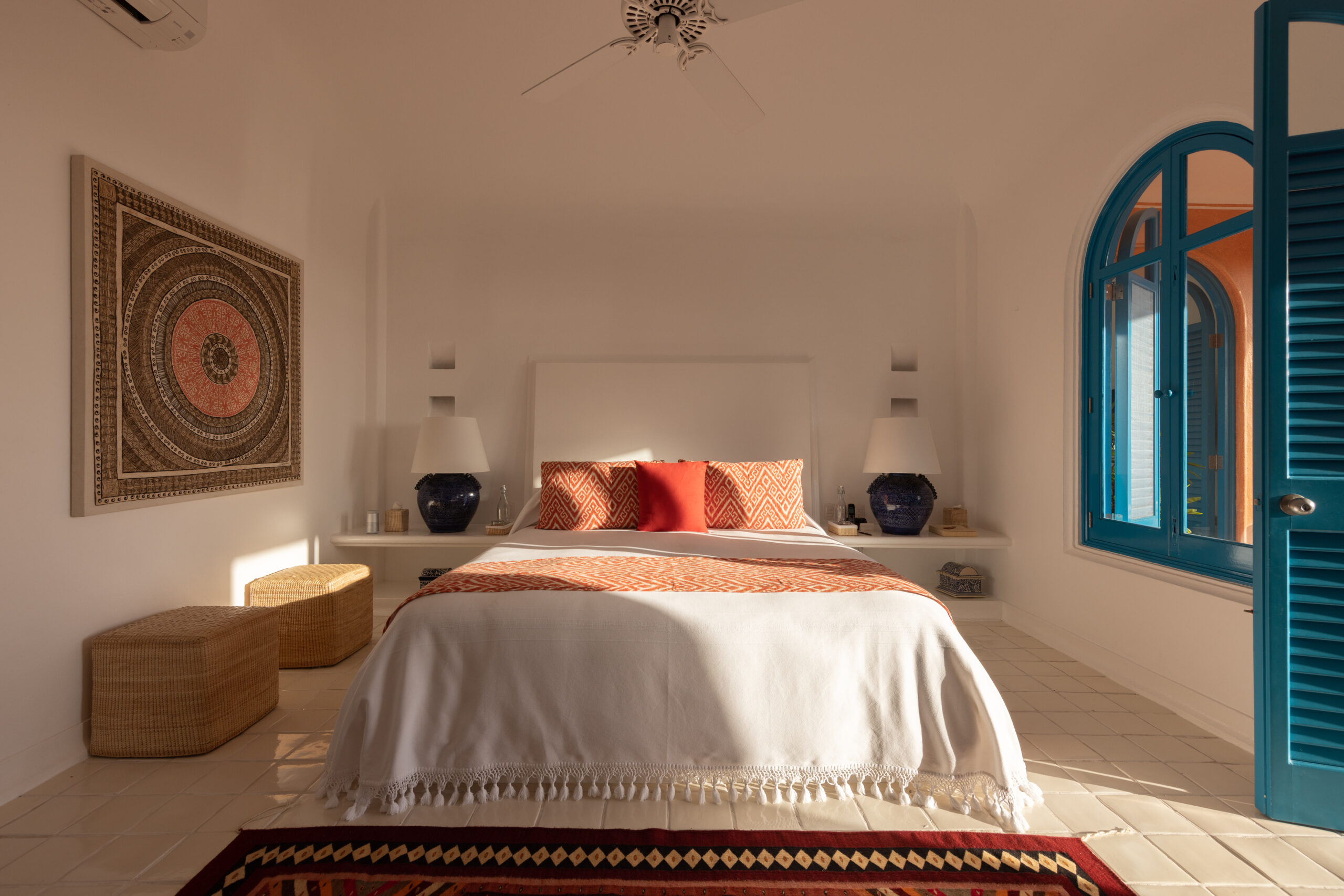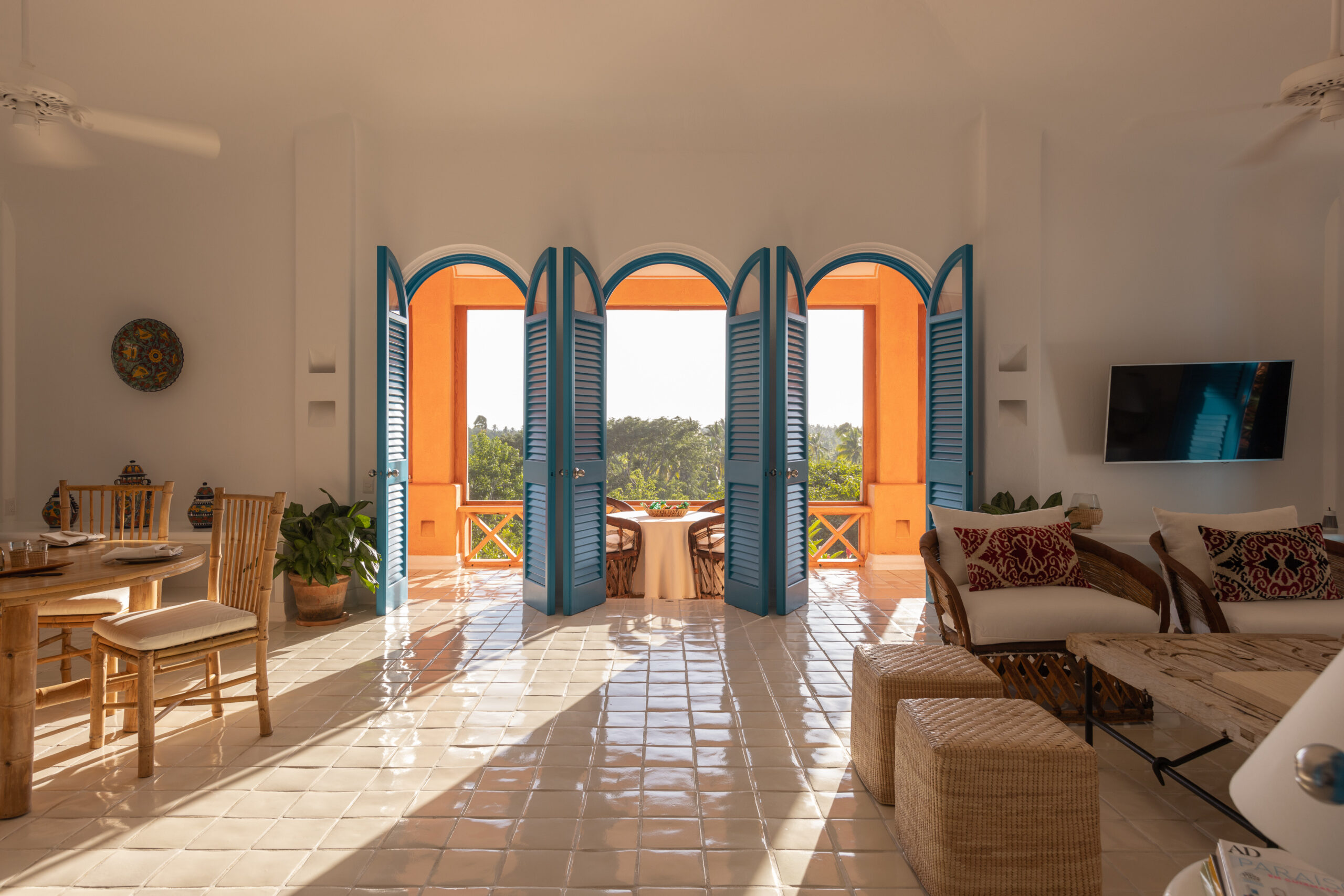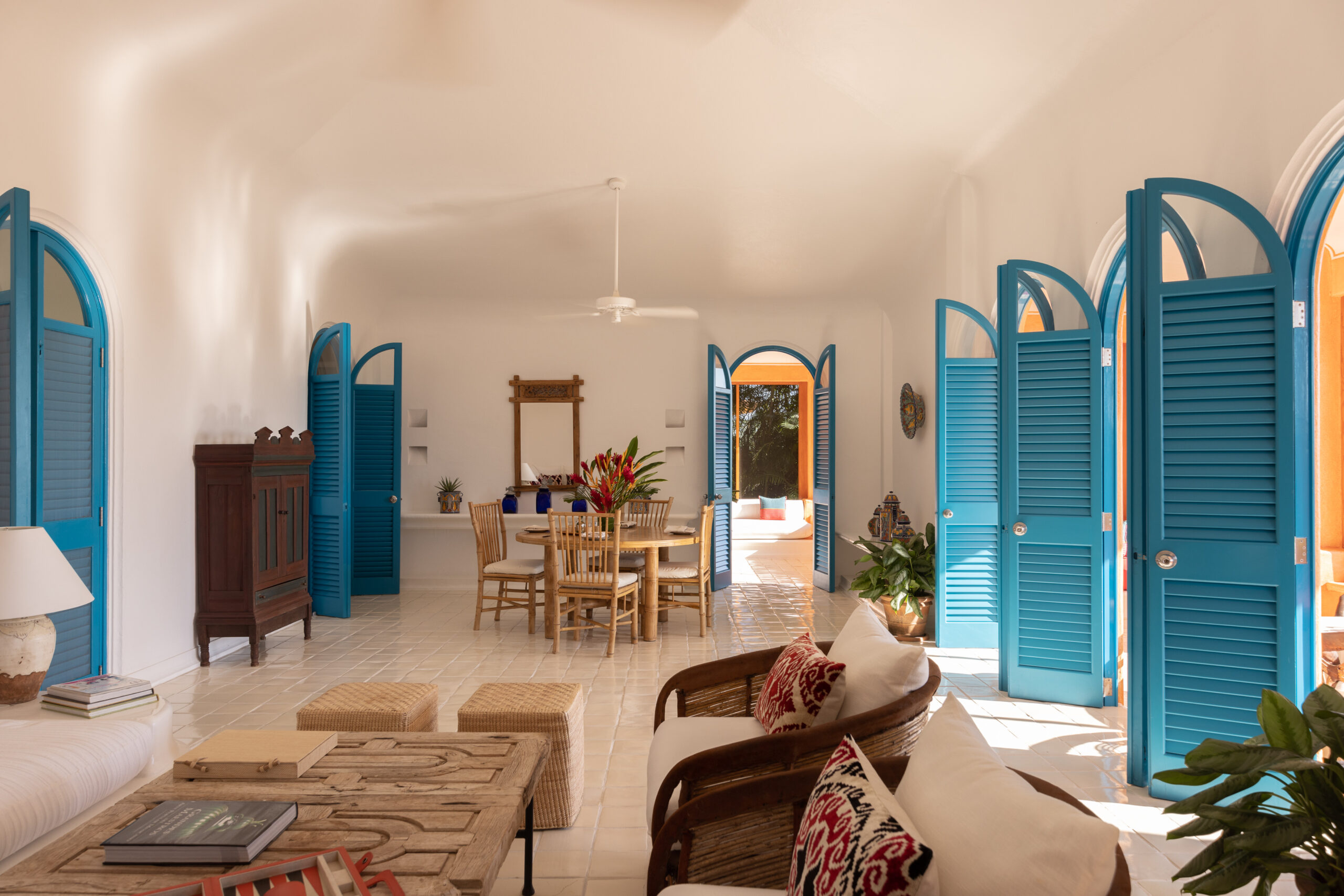 Vibrant colours, patterns and textiles are abundant in Casa Copa de Oro. A joyful interior perfect for families or groups of friends, shuttered windows from each room open onto the outdoor living area, offering inland panoramic views of the lush jungle landscape. Guests have a plethora of relaxation options available to them after long days spent exploring the estate and all of the experiences on offer.