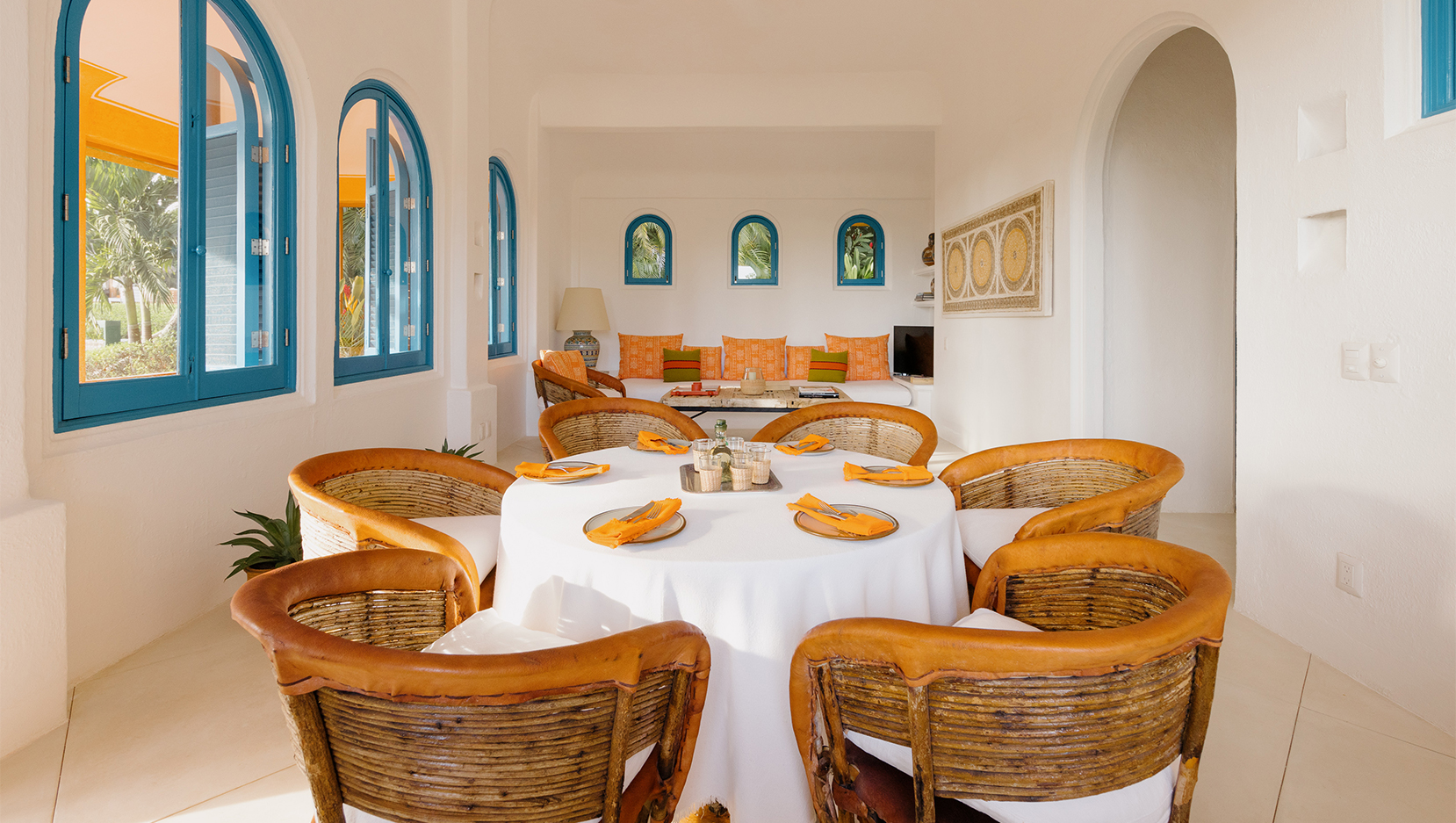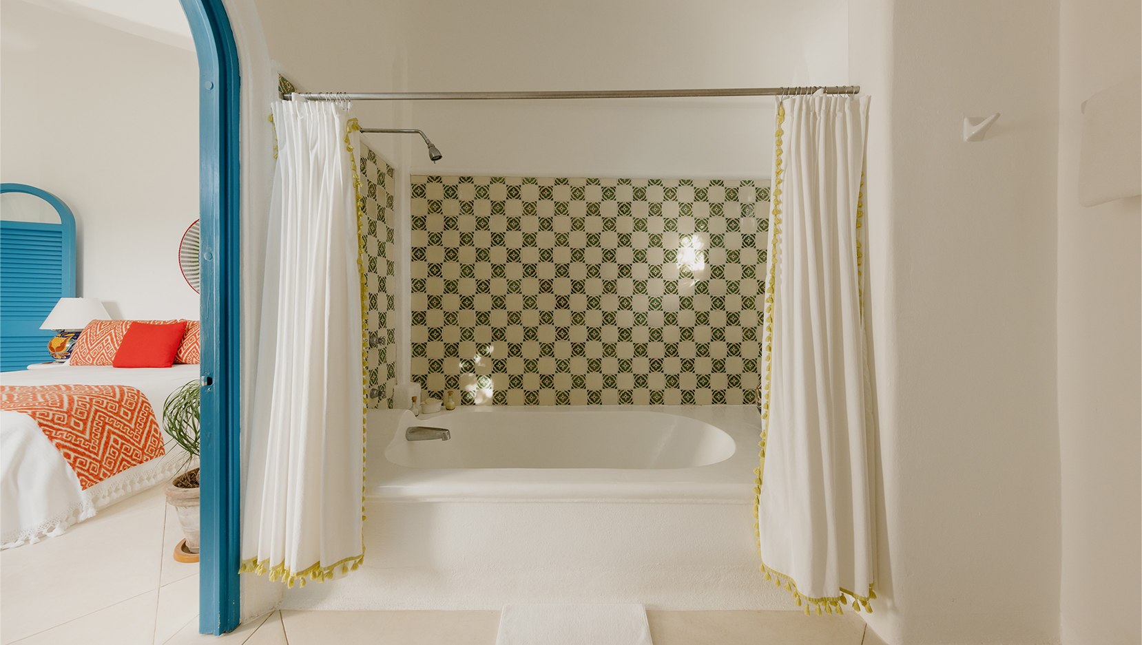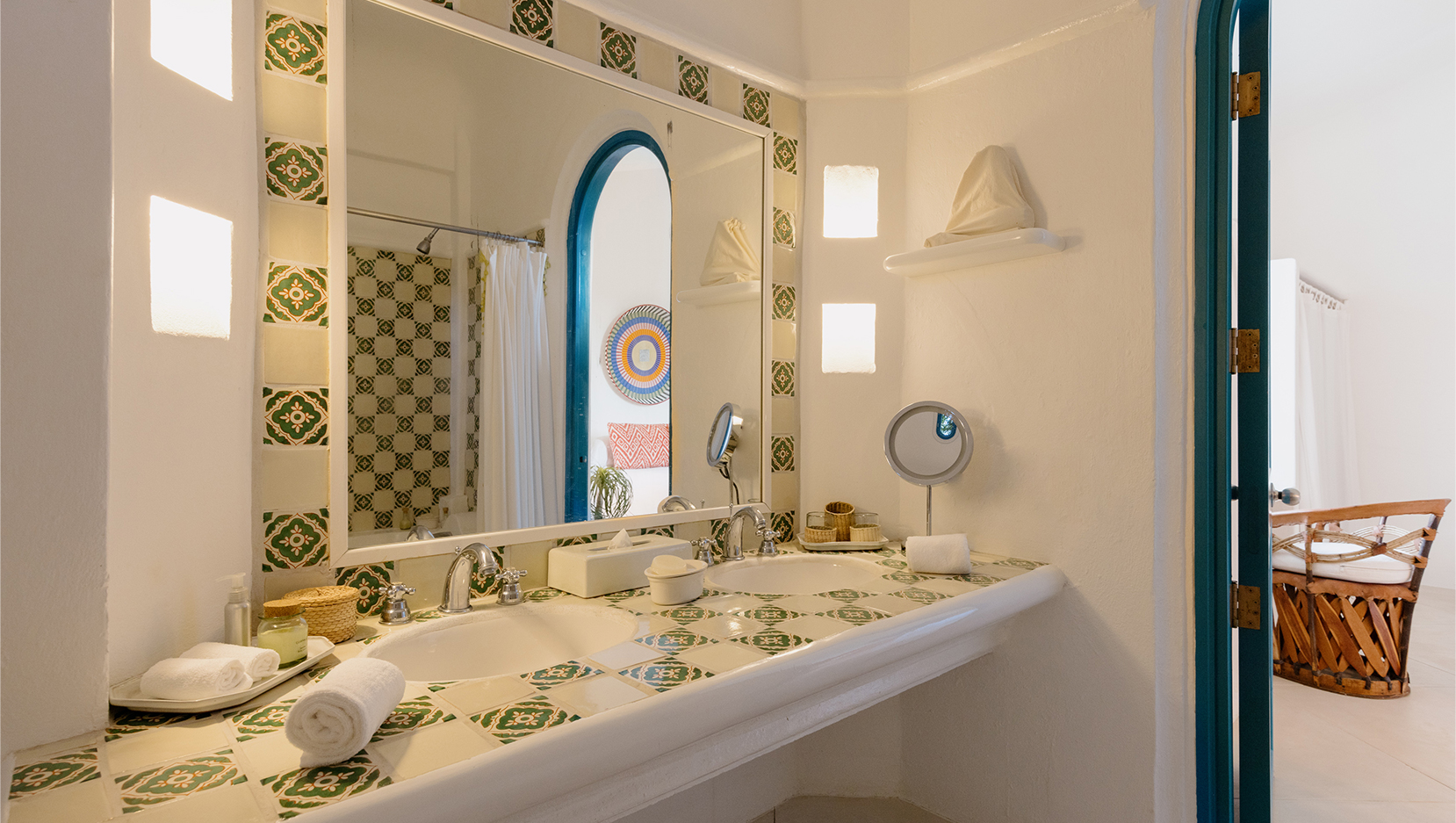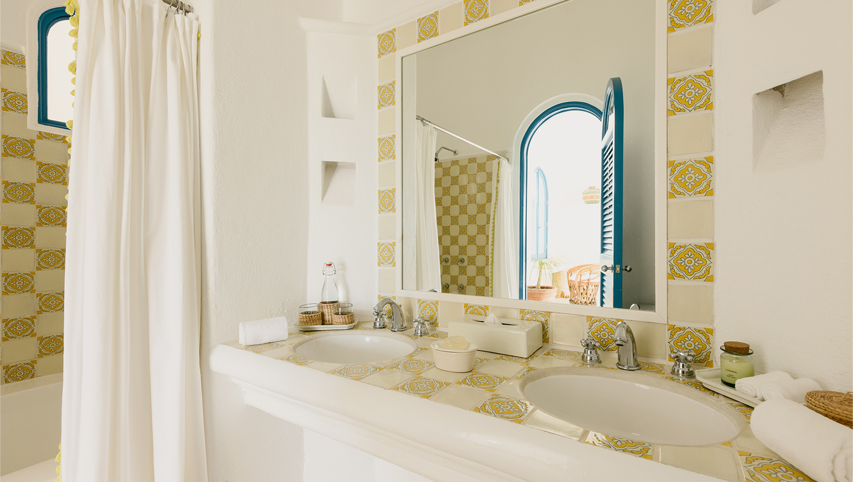 Vibrant colours, patterns and textiles are abundant in Casita Bugambilia. A joyful interior perfect for families or groups of friends, shuttered windows from each room open onto the wraparound terrace, offering views across the lush jungle landscape. In close proximity to the shared pool, guests have a plethora of relaxation options available to them after long days spent exploring the estate and all of the experiences on offer.