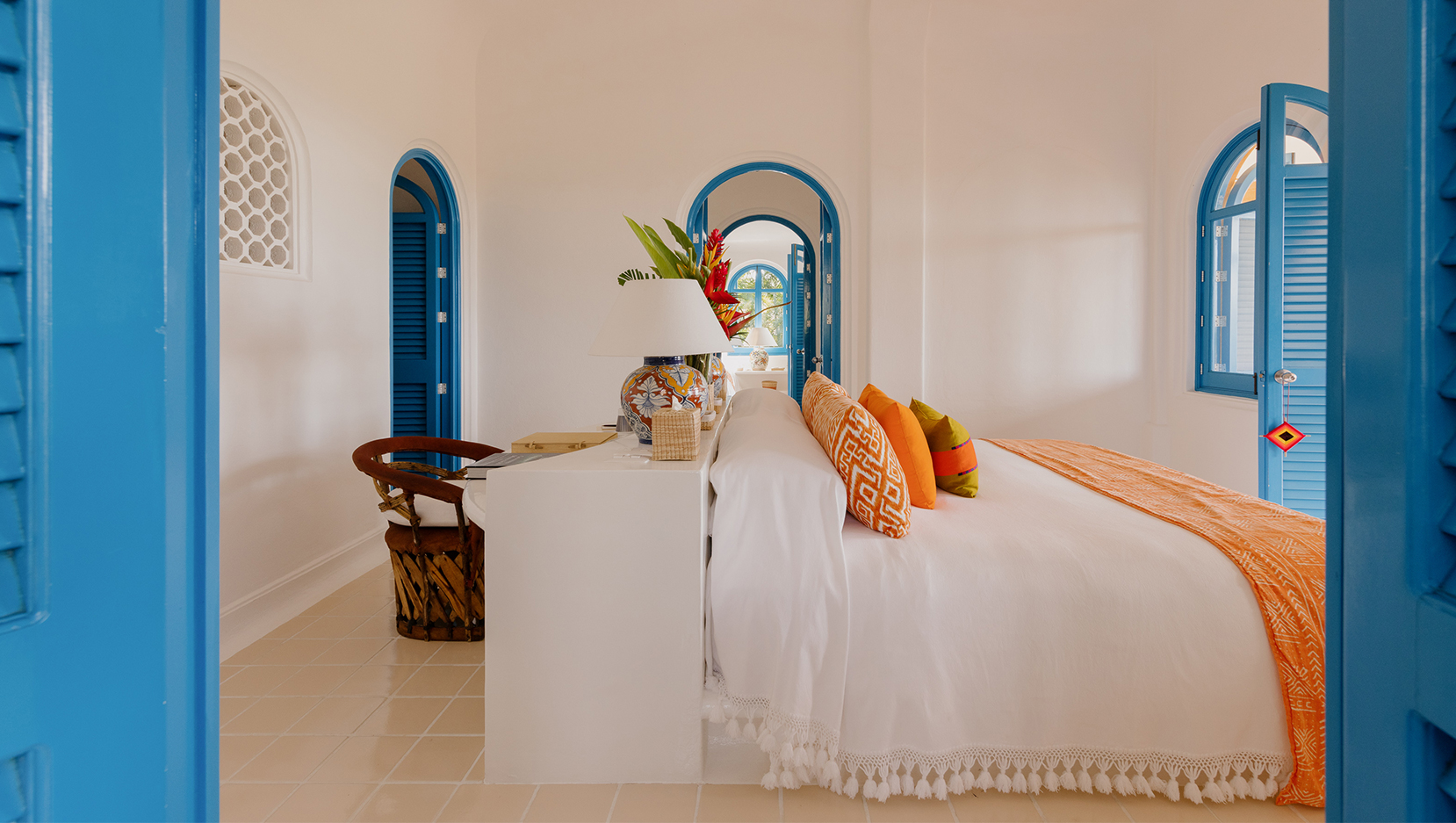 The only one of its kind, Casita Girasol, is an expanded two-bedroom version of Cuixmala’s single bedroom casitas. It features a more spacious outdoor living area, two king-size bedrooms, and two full bathrooms. Set at the highest point of the casitas area, it is only a short walk from the shared swimming pool and enjoys one of the area’s best views out across the hotel property; guests enjoy the traditional restaurant, bar, lounge and game room of Casa Gomez, just a few steps further, below the pool area.